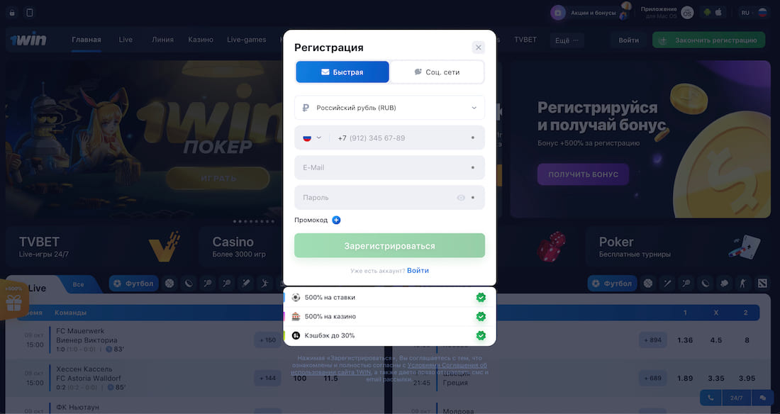 Регистрация на платформе 1вин доступна в браузере или приложении, доступном для Android, iOS, и Windows. Если официальный сайт временно недоступен из-за блокировок или технических сбоев, регистрация и вход возможны на актуальном зеркале.
